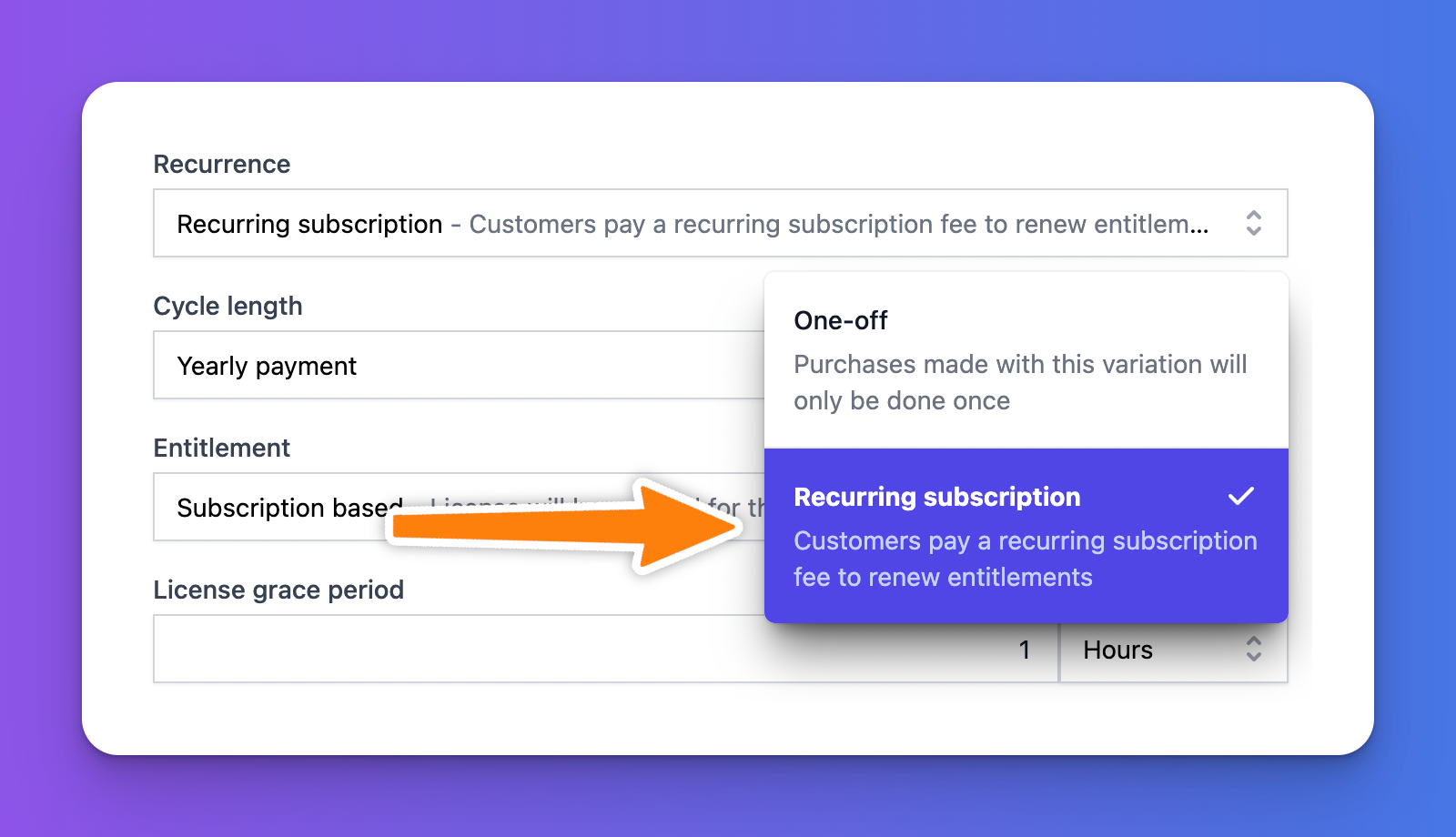 Cycle length: This determines the interval between each payment on subscriptions, and can be either monthly or yearly.
